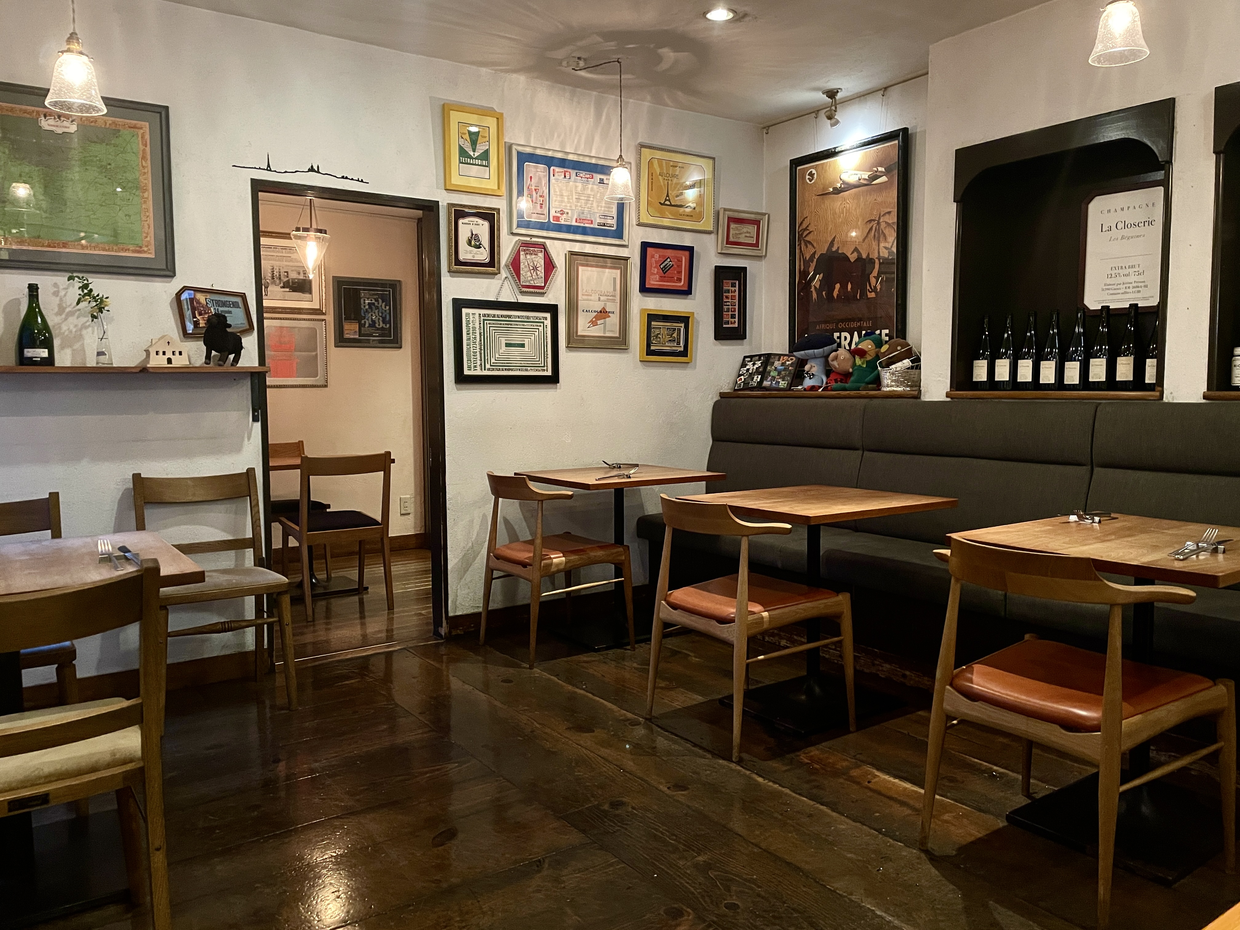 季節の料理が黒板に並びます。 アラカルトで好きな料理を自由に選んでください。 グラスワインは常時10種類ほどご用意。 お好みやお料理に合わせてご提案しています。 大人のためのきちんとしたレストランです。